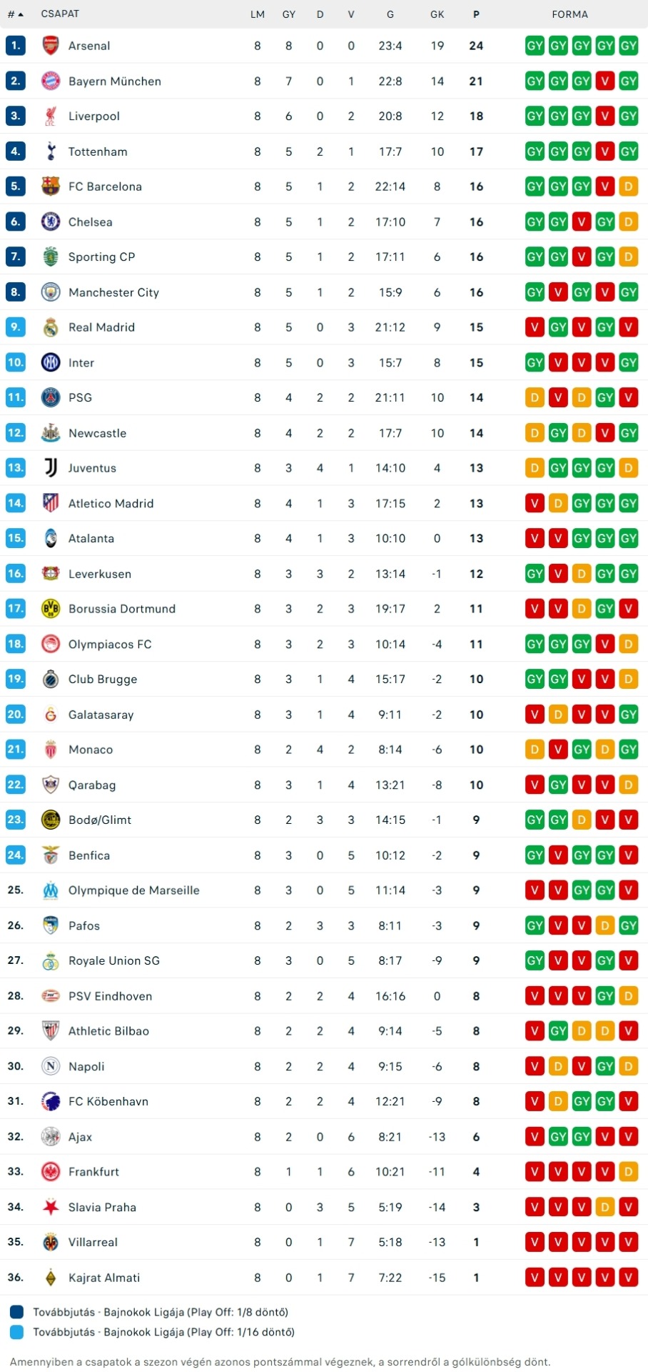 Táblázat forrása: Eredmenyek.com